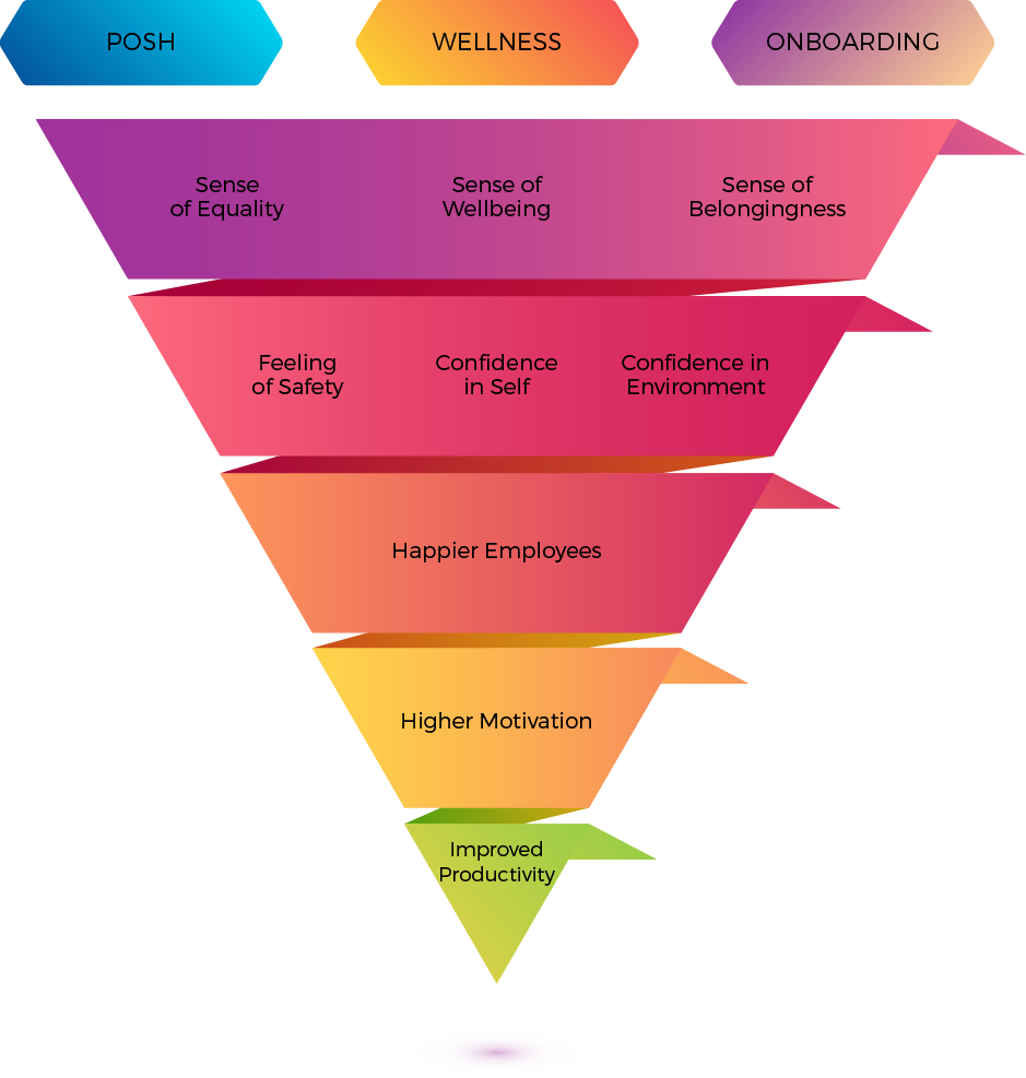 To become your partner of choice for creating harassment free workplace by educating, training individuals to share responsibility for building inclusive, thriving and happier culture to improve well being and overall performance for leading a meaningful life.